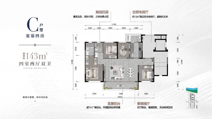 ☆ 建面约143㎡宽幕四房