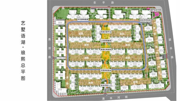 一轴: 约240m艺墅山谷景观轴