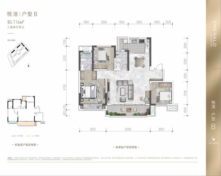 【114的户型、3.5房设计、6米超大客厅阳台】