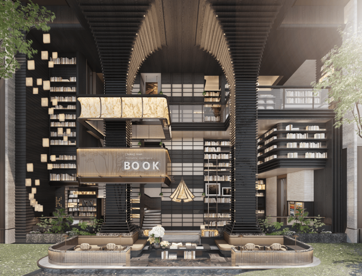 [锦文书吧]三层挑高,满足独处、沙龙与家庭阅读