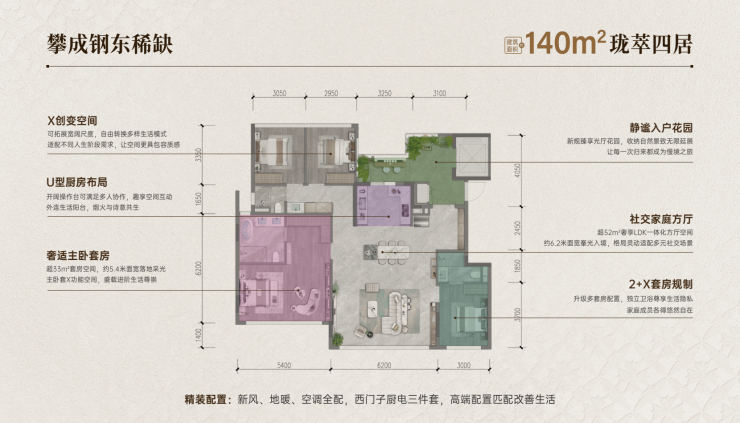 锦江攀成钢东 | 建面约126-140㎡新规精粹四房 | 每一席皆珍藏