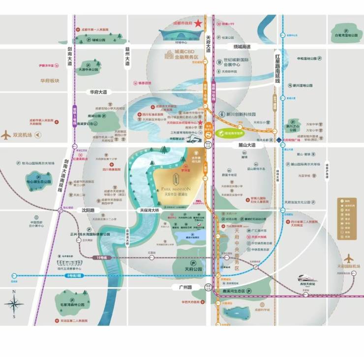 交通方面,项目周边有天府大道、五环路、沈阳路等城市级主干道,驾乘汽车出行的通达性很强;