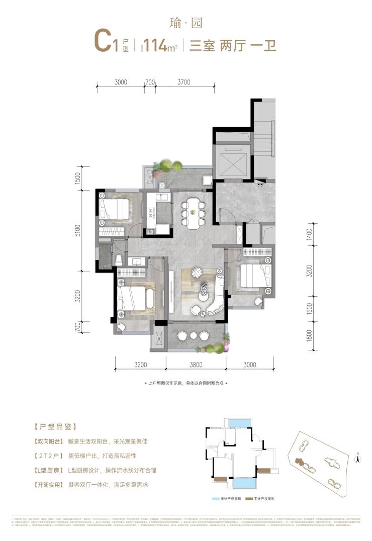 在售户型:①套一:57㎡