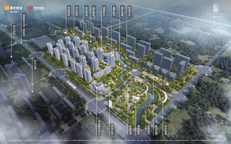 上璟润府总占地约400亩(含配建),其中住宅占地约173亩,容积率仅1.88,分布于六个地块,绿地公园占地约128亩,河道水域占地约35亩。