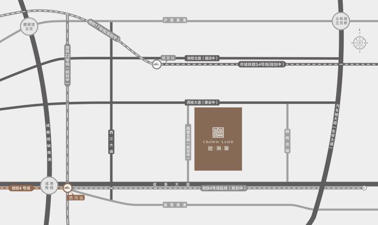 立体交通动脉环绕东进主轴成洛大道、地铁4号线、地铁17号线接驳S4市域铁路(规划中)、地铁22号线(规划中)
