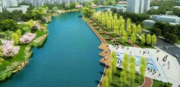 河道拓宽至70米,同时进行景观绿化、人行步道等配套服务,已于2020年4月开工建设