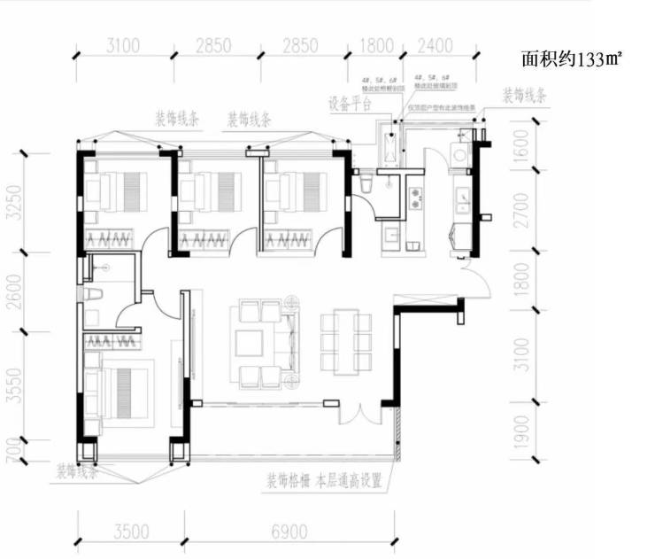 •总层高:二期12-17F(一楼4.5米架空层无住宅)三期9-17F