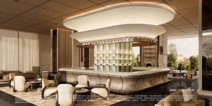 在功能空间规划上,打造“首层空间+下层庭院+架空层泛会所”三重会所,既有悬崖270°书屋(樾+书局)满足内涵提升,亦有行政酒廊、茶吧、健身房、私宴厅等会所功能空间带来情绪价值;既不失王府气度,亦满溢高级烟火。