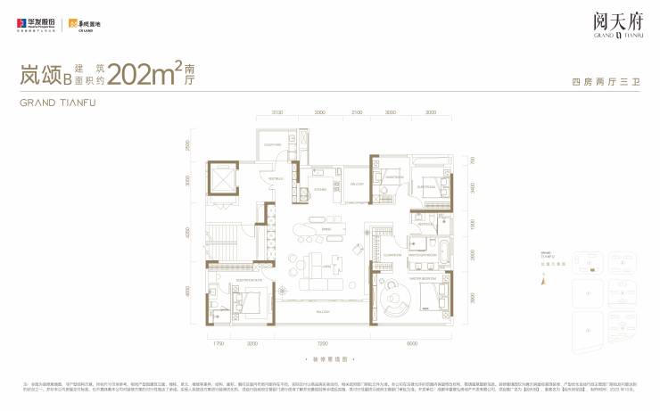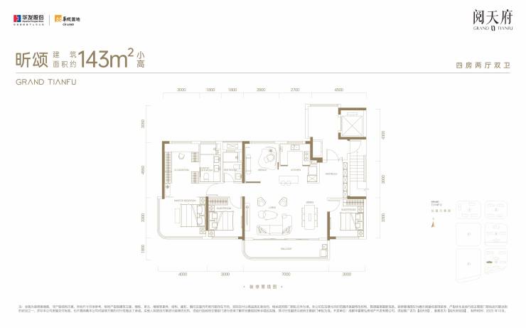 开发商:华润&华发;在售户型:洋房143㎡;高层199-200-252㎡; 总楼层:高层24F;洋房7F;小高17F; 层高:洋房3米;高层3.15米;梯户比:1T2户;2T2户;交房时间:2026年3月; 占地:143亩;绿化率:35%; 容积率:2.5‘’产权年限:70年; 总户数:694;物业公司:华润; 物业费:4.5元;车位:1:2.;装修情况:精装