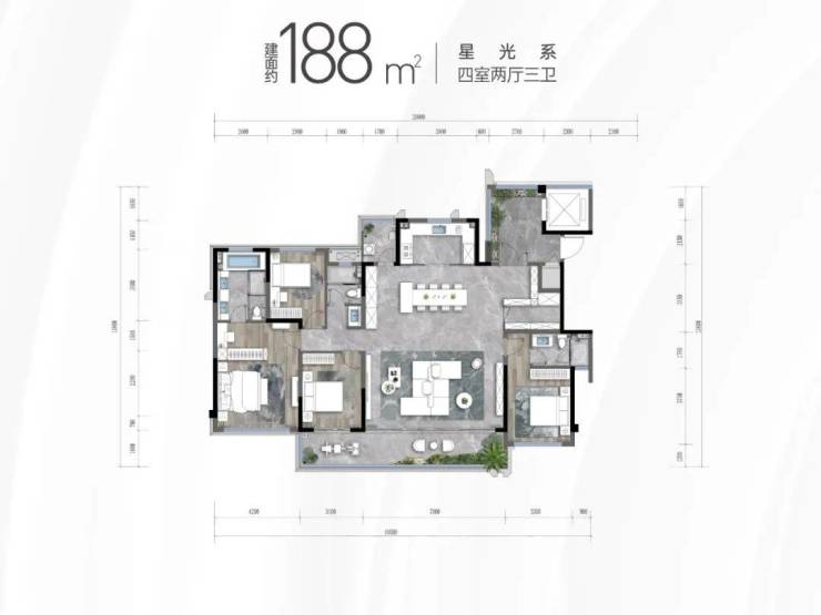 项目总占地约47.5亩,容积率约2.5,建面79,158㎡,规划户数432户,车位936个,共规划了11栋17F的小高层,均为2T2户纯板式结构。产品形态及未来社区圈层纯粹,均为大平层品质改善客户,且户型最低门槛约143㎡,中间段包括建面约168㎡、188㎡,最大的楼王户型则达到了约245㎡。