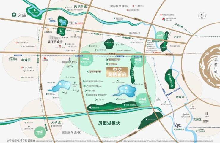片区已落地了川师附属温江实验学校和成都市温江区菁才中学校。其中,川师附属温江实验学校是由四川师范大学领办的公办九年一贯制学校,学校共规划54个班,已经建成,小学与初中计划9月开学。成都市温江区菁才中学校由成都七中领办(项目正对面),现已开工建设,将于2025年8月正式开校。成都七中和川师附,两大“品牌”教育资源加持,凤栖湖的教育配套几乎处于同圈层中的第一梯队。