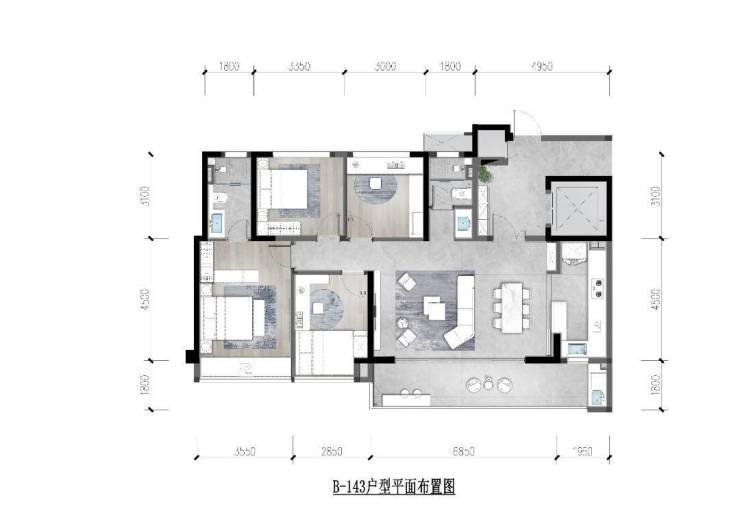 在售面积:128-143㎡(三房/四房)
