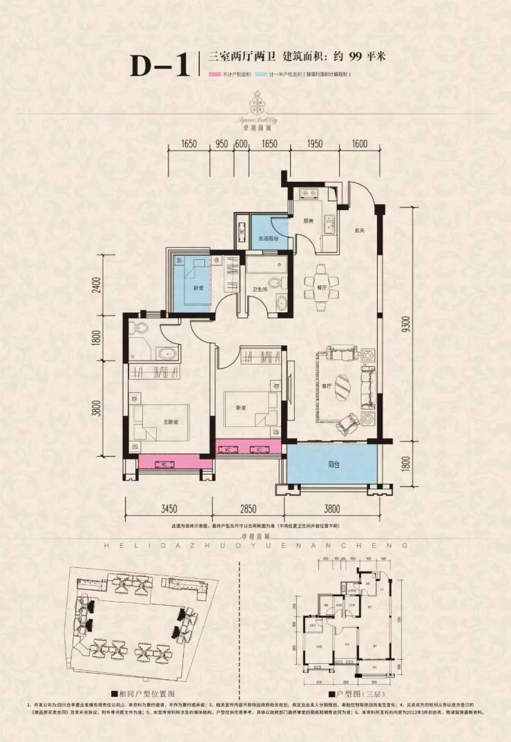 物业费:高层 2.7 元/㎡,洋房 3 元/㎡。