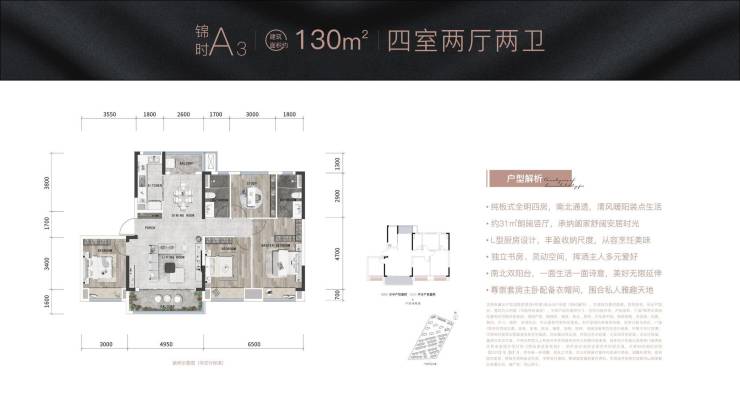 户型面积:小高层:130㎡-143㎡(四室两厅双卫) 别 墅:225㎡-238㎡(四室两厅三卫)