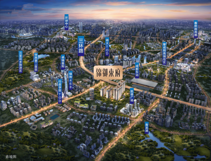 🔸交通:本项目拥有三横三纵的发达立体城市交通路网(三横:二环路,三环路,成都绕城高速;三纵:蜀都大道,东大街——驿都大道,成龙大道),依循东西纵线地铁2/30号线(在建中):2站到达成都东客站,4站到达攀成钢/东大路,8站到达金融城/春熙路;加之项目东西衔接行政学院TOD与四川师大TOD“双城市级站点”覆盖区,自身又处于惠王陵组团级TOD站点之上,形成黄金三角核心,不仅是“交通核”,更是“城市核”:领行时代,出行无忧;全域在握,举步天地。