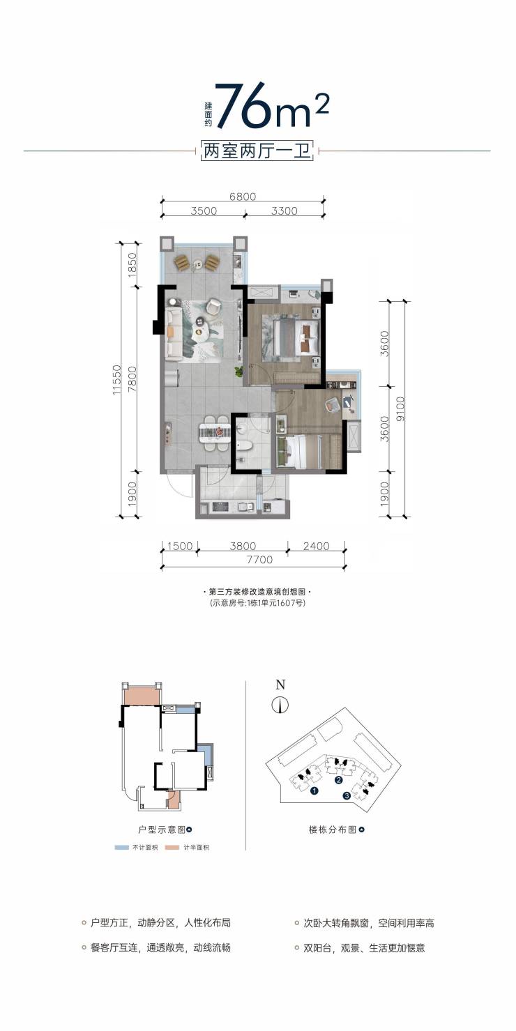 整体规划采用半围合式布局,约5000㎡中庭园林景观,享超大楼间距,互不遮