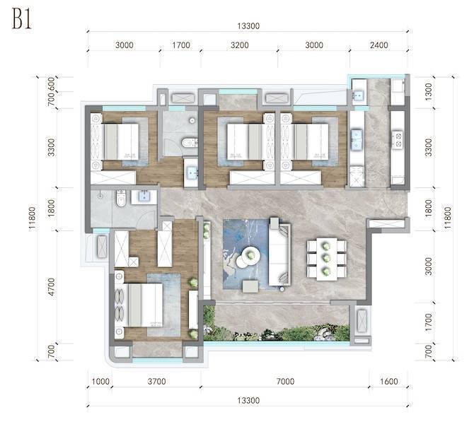 B1:约136㎡四房两厅双卫