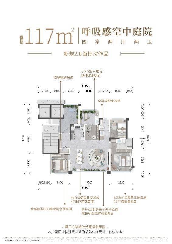 天府系越级创新,客厅+主卧升级类推拉系统窗,拉开就是大庭院