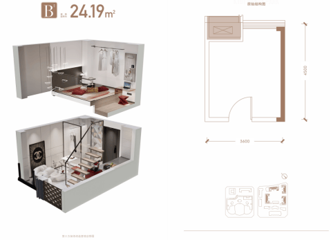 LOFT建筑面积:套一约24㎡,套二约34㎡