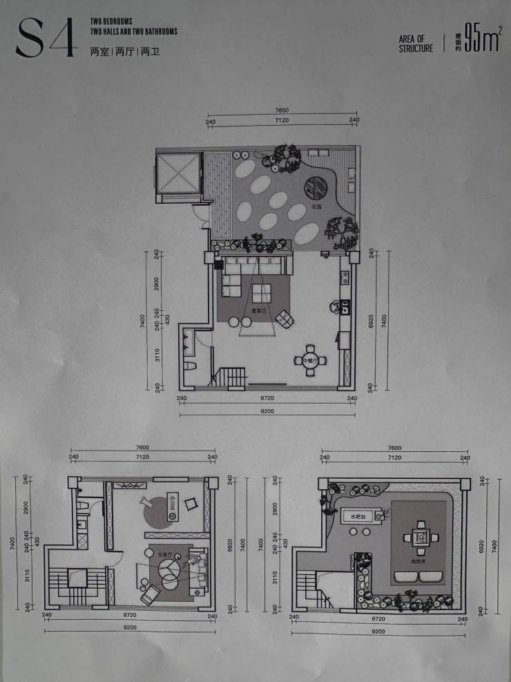 ✅【上叠】大概在90平方左右的花园,还有20平方左右的平台的平台。建面90平方,赠送下来270平左右。总价180万左右。