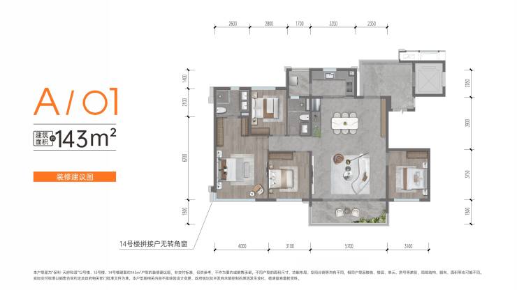 天府和颂二期首开的经典四房产品:建面约123㎡板式洋房。