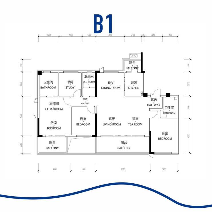 建面约153㎡(四室两厅三卫)